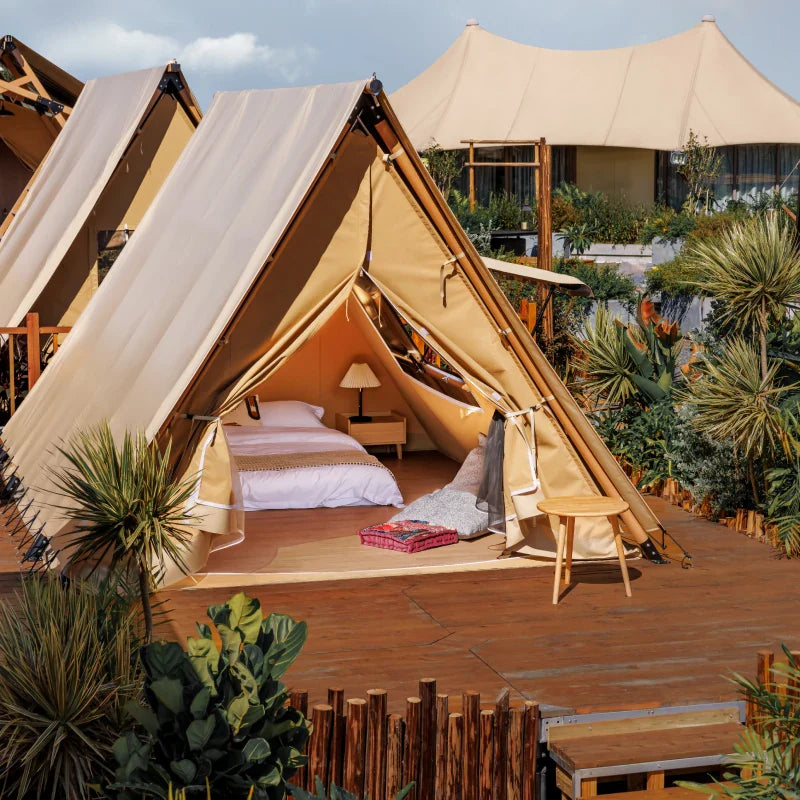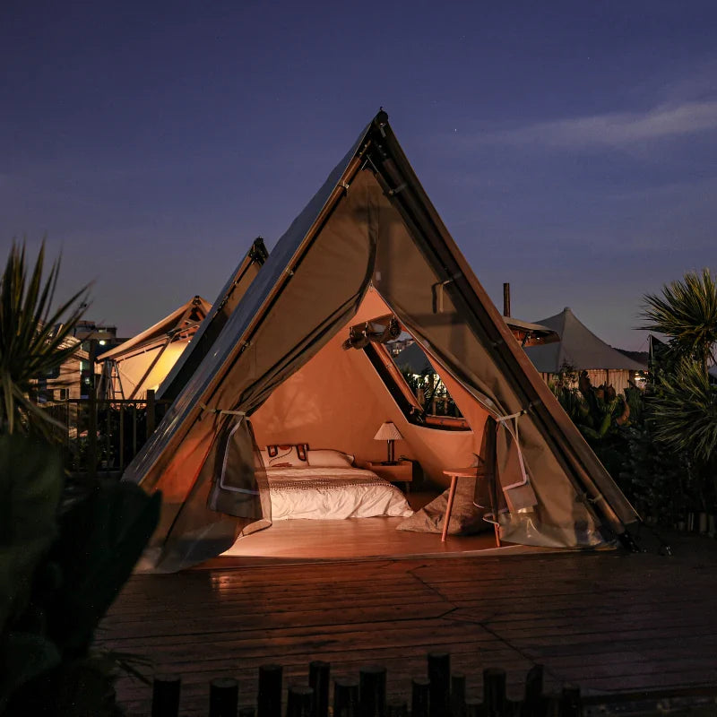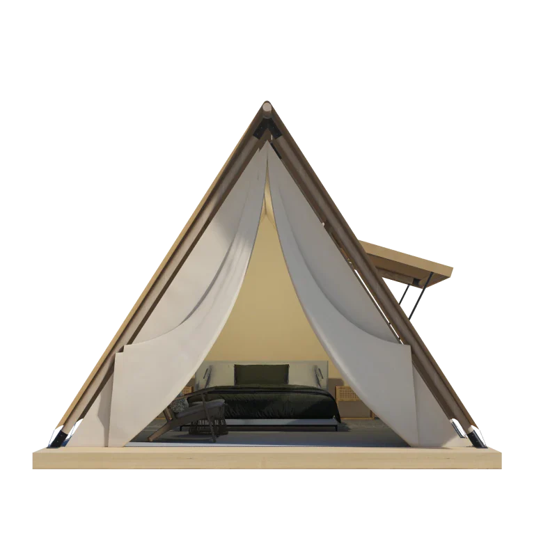 Ease of use is equally important. With its modular “plug-and-play” design, setup is quick and intuitive, removing the stress of complex installations. The result is a glamping tent that combines practicality with elegance — a thoughtful space where simplicity meets luxury.