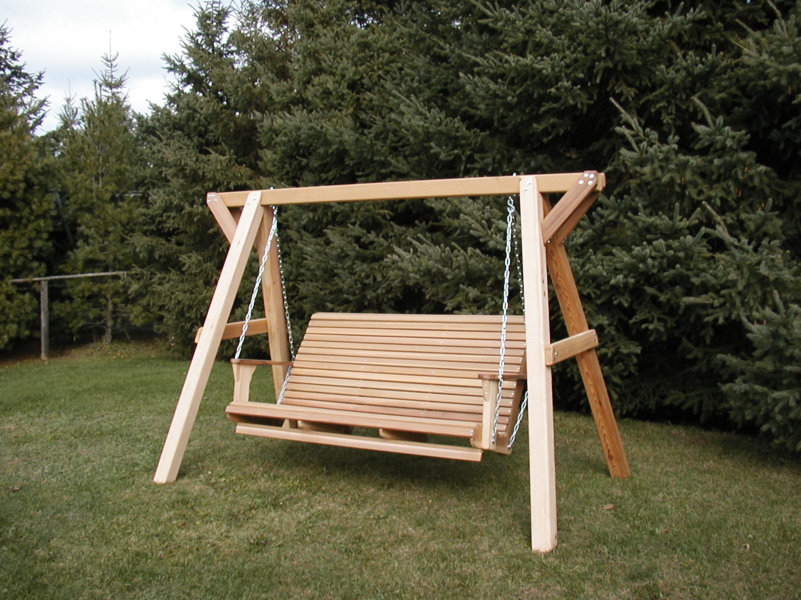 The spacious 60" seat comfortably accommodates multiple people, while the included frame requires a 4' x 8' footprint. The swing can also be purchased without the frame; an extra 2' of hanging chain is provided for standard 8' ceilings.