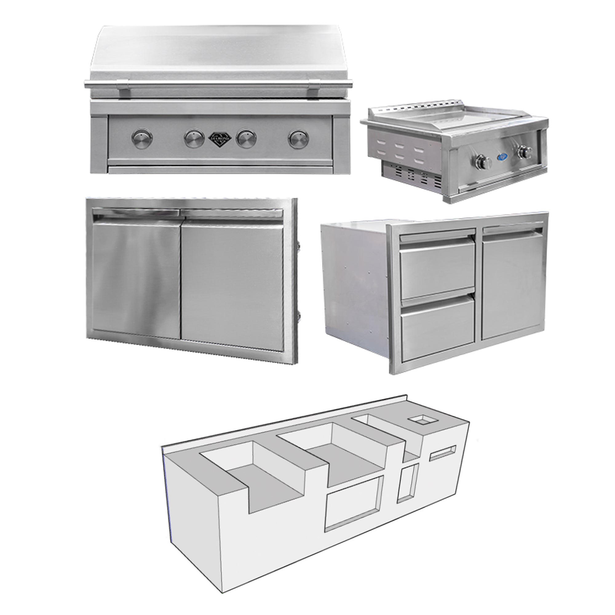 Diamond Grills Outdoor Kitchen Kit No. 3 - With Outdoor Griddle Modular Built In Grill BBQ Island Kit