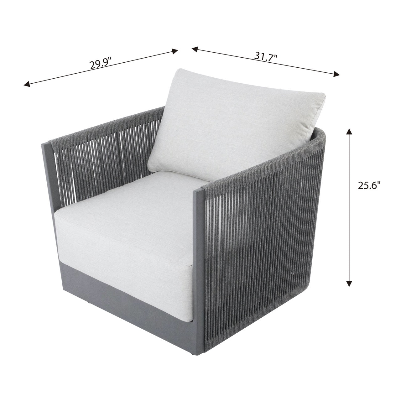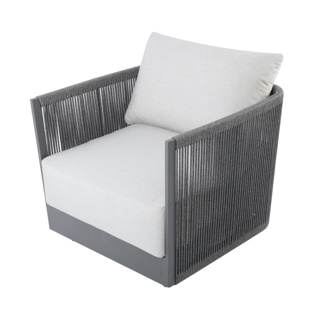 Generous cushions, crafted with quick-drying foam and upholstered in fade-resistant Sunbrella® Canvas Granite, deliver long-lasting comfort and effortless sophistication. Designed for both residential and commercial environments, the Capri Lounge Chair thrives anywhere relaxation and good design meet. With its low, modern profile and gently curved rope backrest, it’s a piece made for unwinding—and for elevating the entire atmosphere around it.