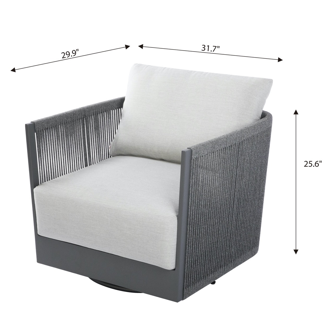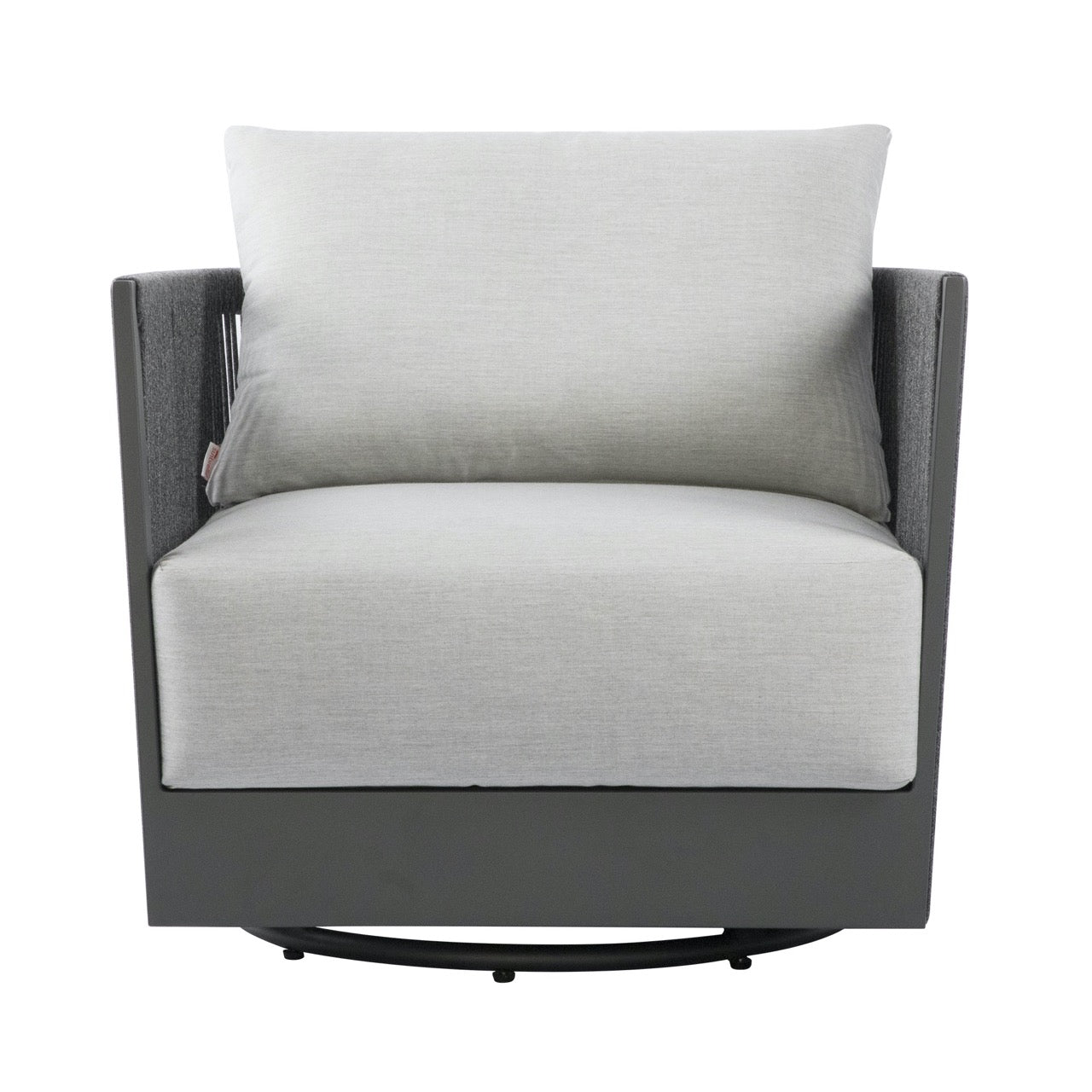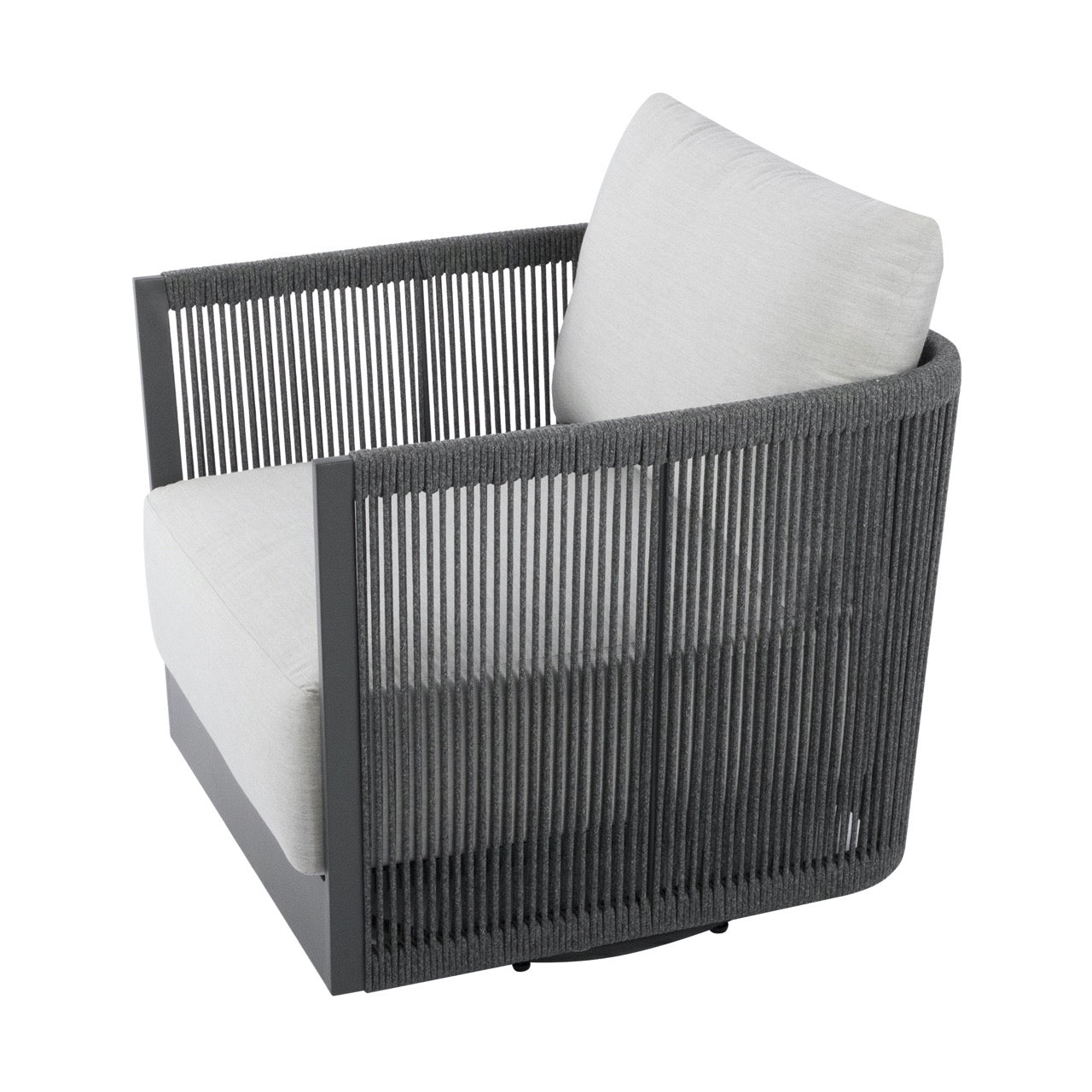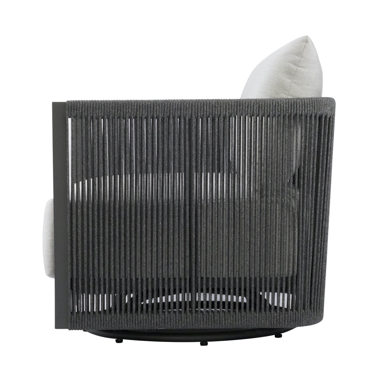 The Elementi Capri Rope Swivel Chair brings sculptural style and effortless comfort to refined outdoor spaces. Its smooth 360° swivel base encourages easy conversation from any angle, all while maintaining a grounded, supportive feel. Built with a powder-coated aluminum frame, the chair remains lightweight yet exceptionally durable, resisting rust, harsh weather, and coastal conditions season after season.