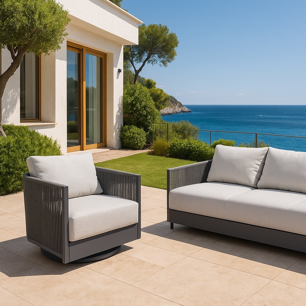 Designed to meet the demands of luxury residential living as well as high-traffic hospitality environments, the Capri Swivel Chair offers striking contemporary form and enduring performance—an unmistakably modern piece that enhances patios, rooftop lounges, and elegant outdoor retreats.
