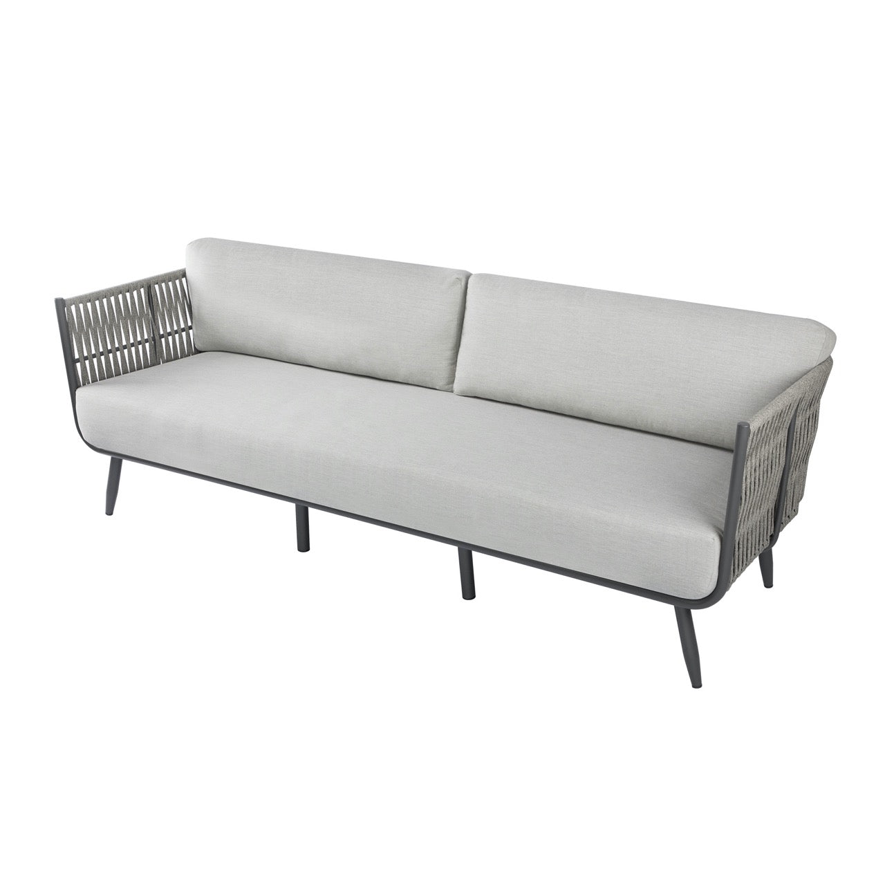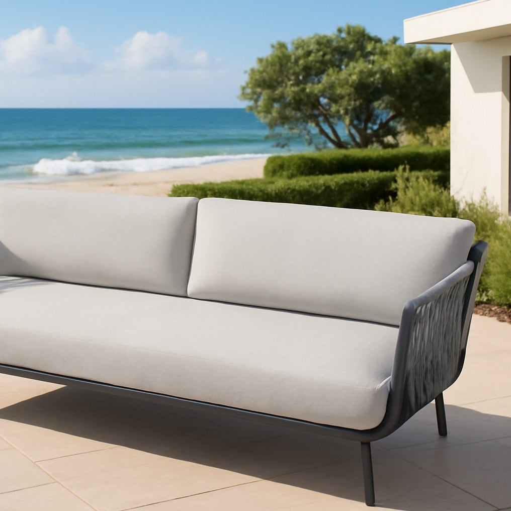 The Elementi Milano Rope Sofa brings contemporary refinement and lasting performance to any outdoor setting. Built on a rustproof, powder-coated aluminum frame, this sofa offers exceptional strength without unnecessary weight, ensuring durability through every season. Its hand-woven, weather-resistant rope detailing adds sculptural texture while standing up effortlessly to sun, moisture, and everyday wear.