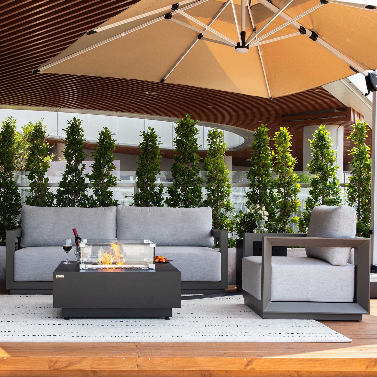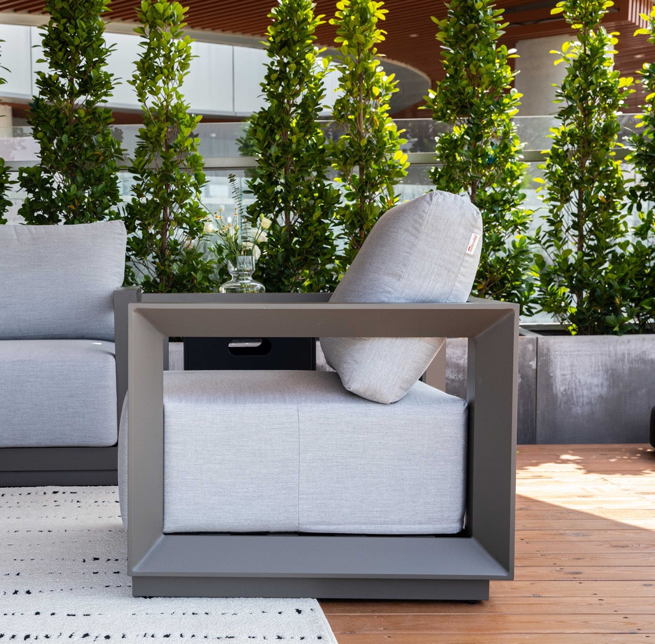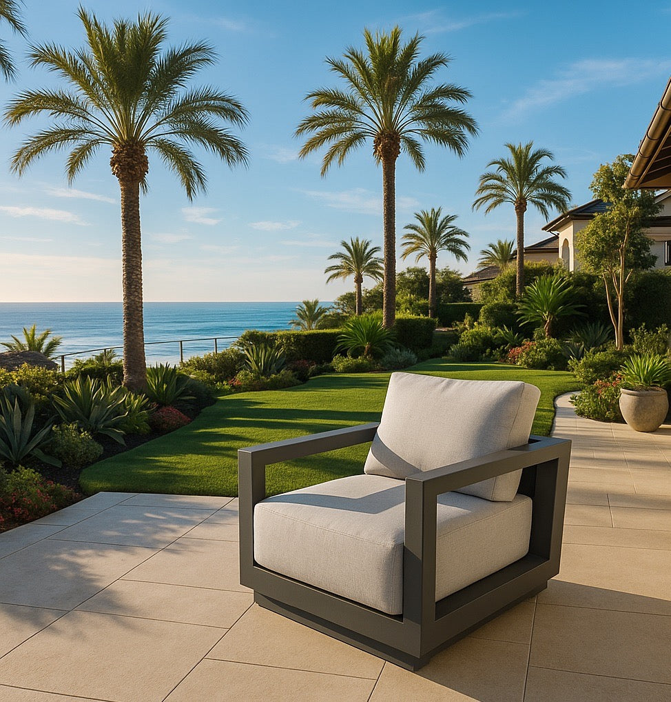 Soft, deep cushions made with quick-drying foam and wrapped in fade-resistant Sunbrella® Canvas Granite fabric offer long-lasting support while maintaining a sleek, contemporary look. Equally suited to refined residential patios and high-end hospitality settings, the Newport Lounge Chair blends modern style with uncompromising durability—perfect for unwinding poolside, on a rooftop deck, or in any thoughtfully designed outdoor retreat.