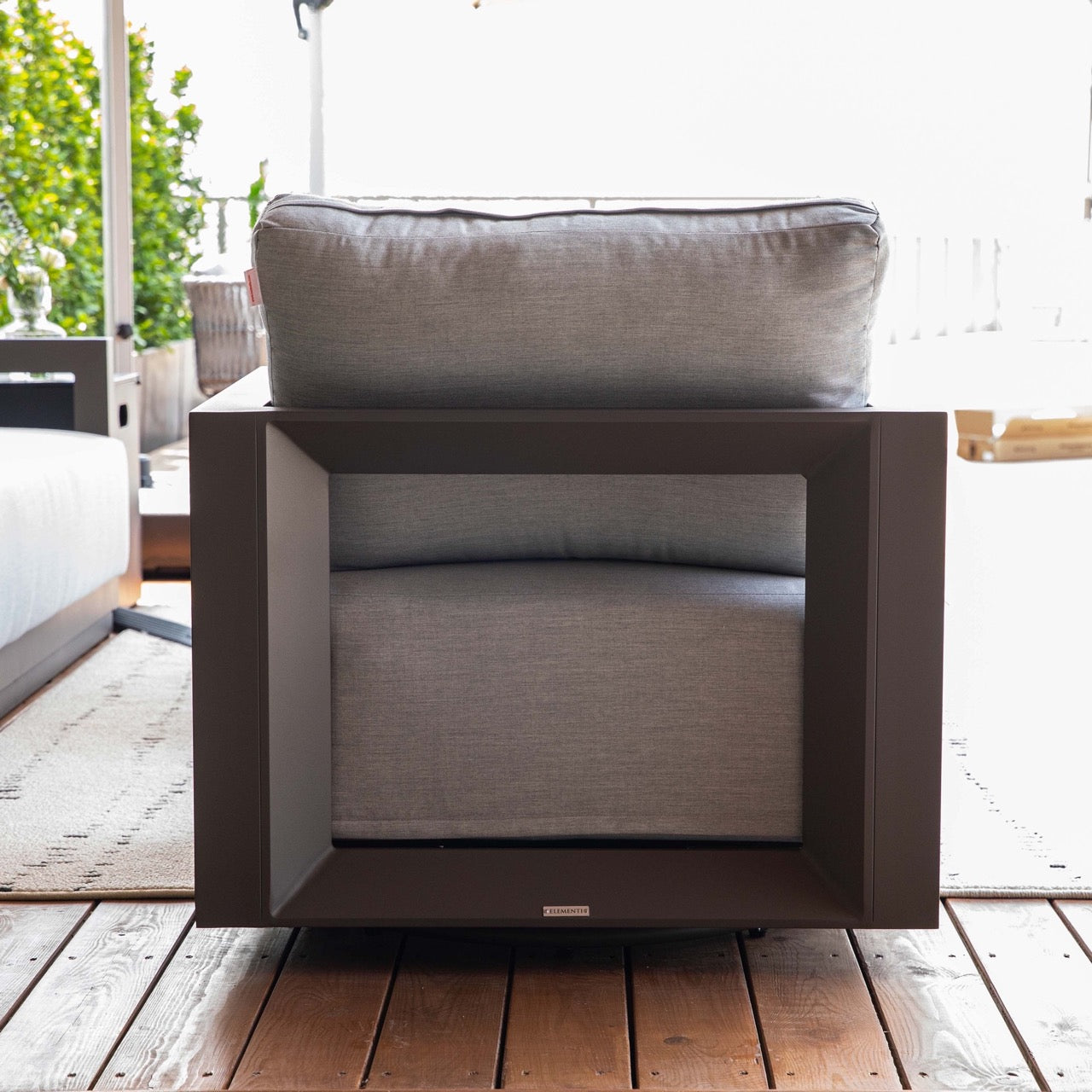 The Elementi Newport Aluminum Swivel Chair brings refined minimalism and effortless motion to modern outdoor living. Built on a rustproof, powder-coated aluminum frame, it’s designed to withstand the elements with a durable multi-step protective finish that ensures long-lasting beauty in any climate. Its smooth 360-degree swivel base offers relaxed, fluid movement, making it easy to shift your view or join a conversation without ever leaving your seat.