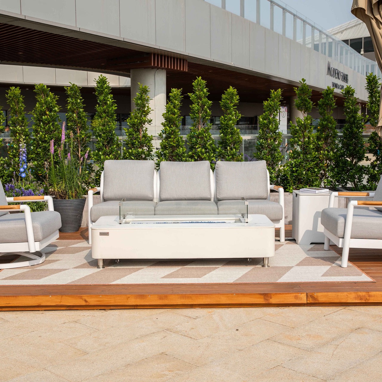 White Powder-Coated Frame w/ Grey Chine Cushions |