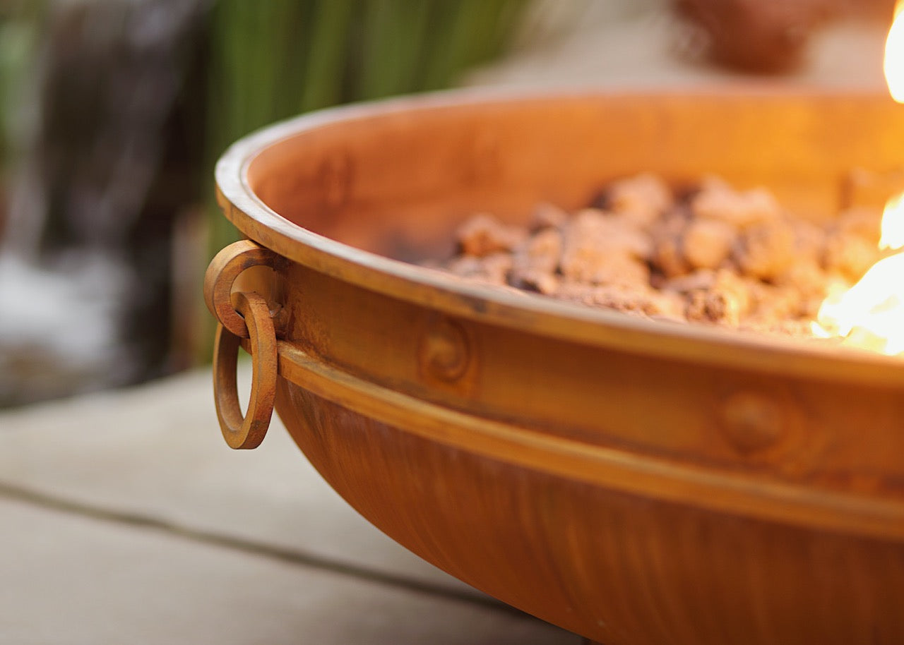 As the fire pit matures, the patina deepens into a rich, permanent finish — a visual story that grows with every gathering.