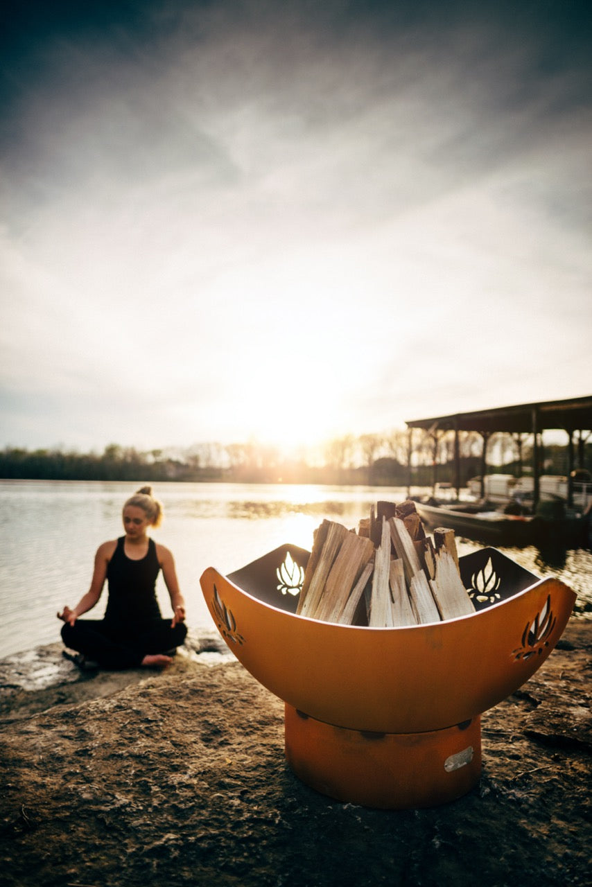 Inspired by the spiritual greeting Namaste — “the divine in me honors the divine in you” — this sculptural fire pit brings intentional beauty to outdoor spaces. Four elegant lotus silhouettes encircle the bowl, symbolizing the heart as it awakens and opens like petals in the presence of warmth and light.