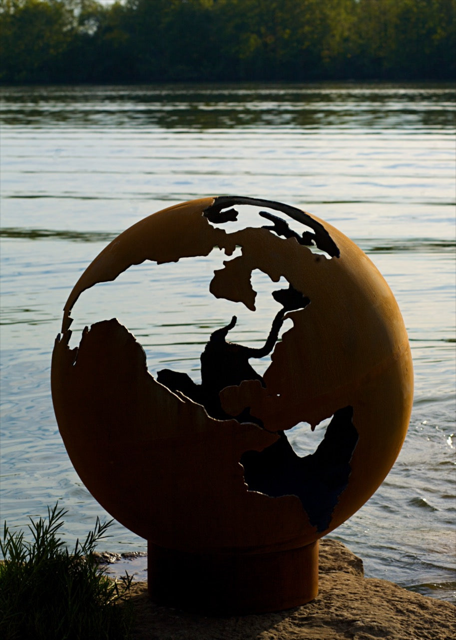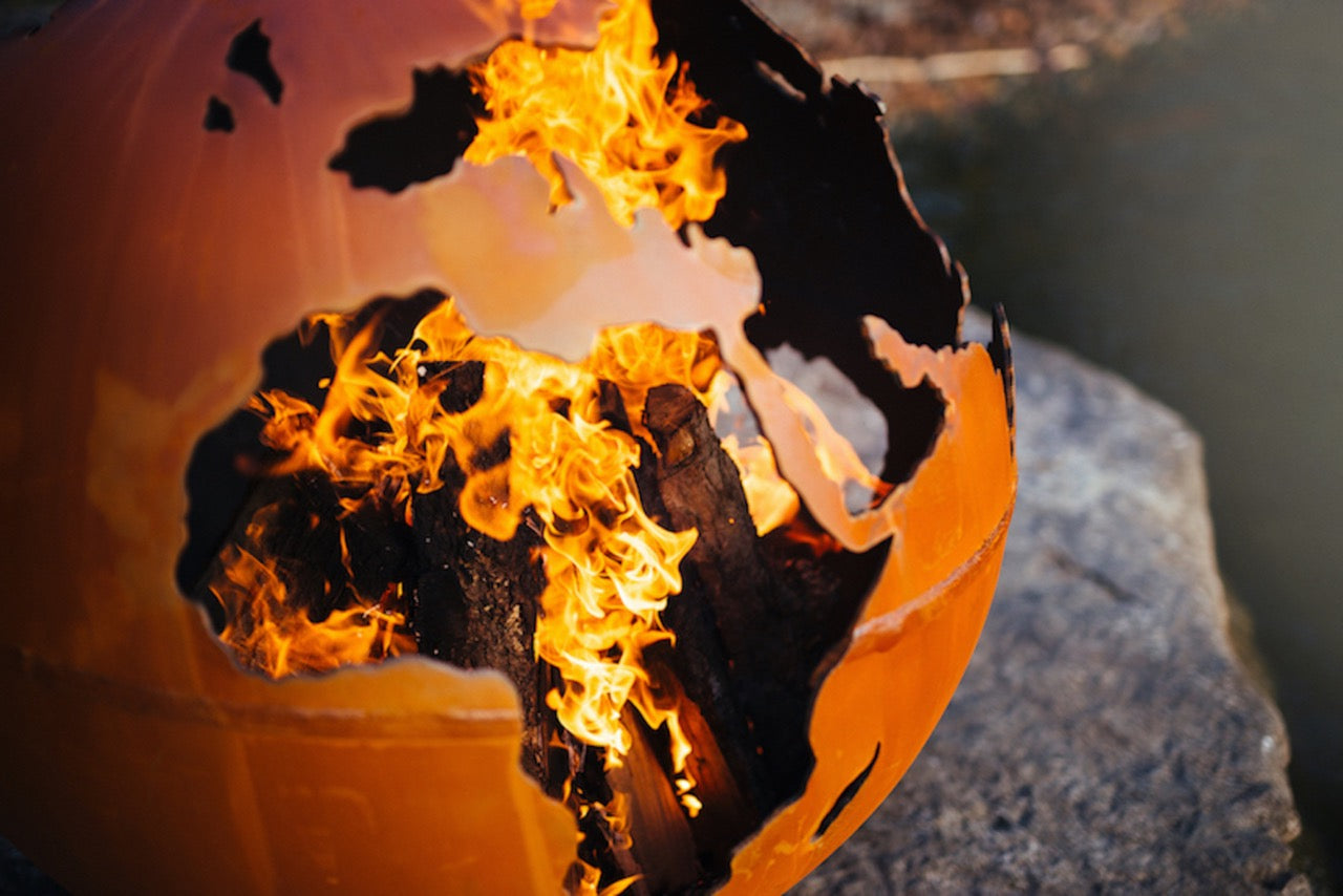 A stunning conversation piece by day and a dramatic beacon of warmth by night — this globe-shaped fire pit invites admiration from every angle.