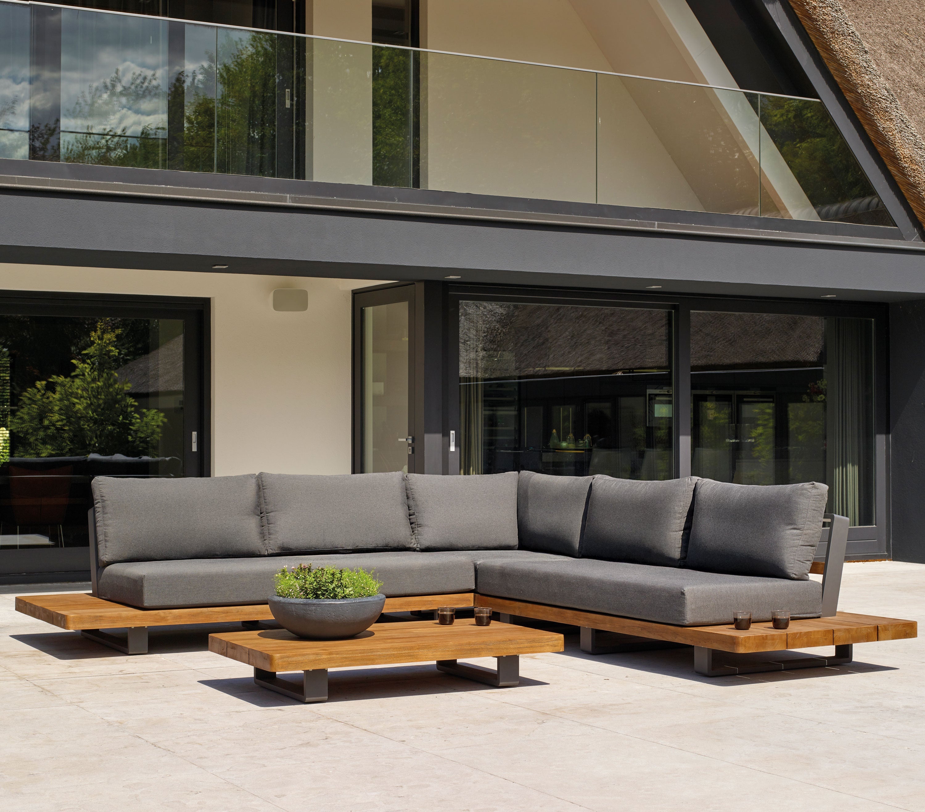 Looking for that one outdoor piece that effortlessly becomes the center of attention? The Fitz Roy teak corner set delivers just that. This collection blends the warmth of natural Indonesian teak with the sleek strength of an aluminium frame, finished with plush, all-weather cushions. Its soothing, neutral palette settles seamlessly into any outdoor setting, while the modular layout and built-in side tables create an easygoing space for gathering, lounging, and sharing a drink with friends. Let the neighbors try to keep up.