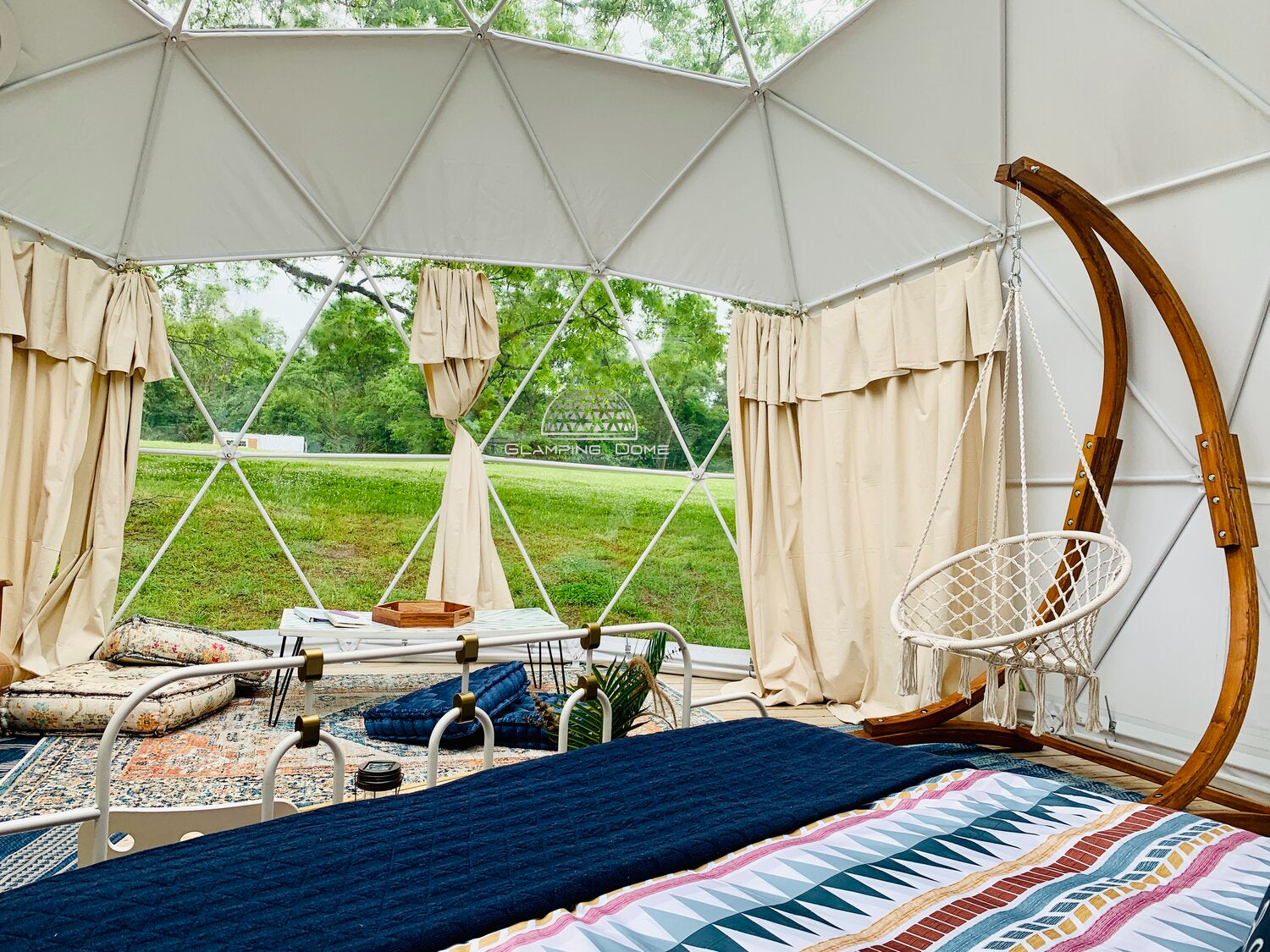 With 304 ft² (28 m²) of open, adaptable space, the 19.7 ft geodesic dome invites you to dream bigger outdoors. Whether envisioned as a luxury glamping suite, a serene yoga or art studio, or a striking venue for gatherings, this dome blends modern design with natural connection — making it a favorite among boutique Airbnb hosts, retreat leaders, and eco-forward properties.