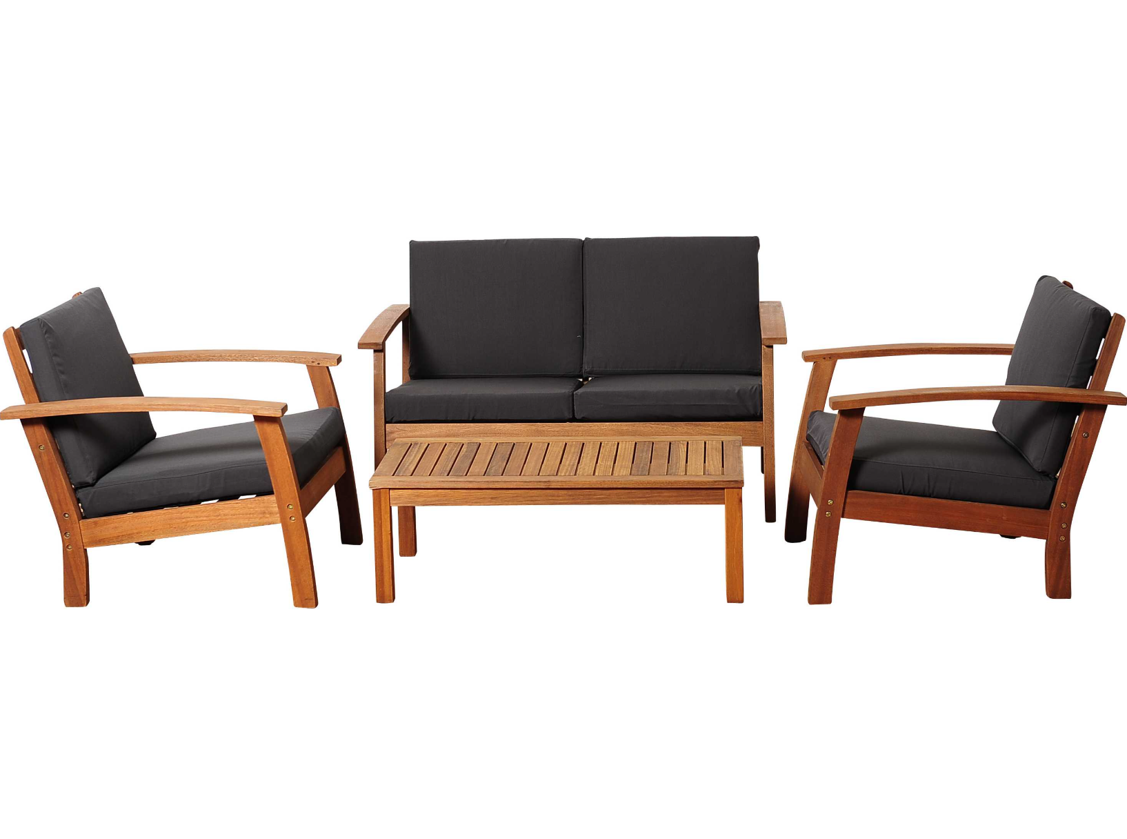 International Home Miami Amazonia Eucalyptus Four Piece Murano Conversation Set with Black Cushions