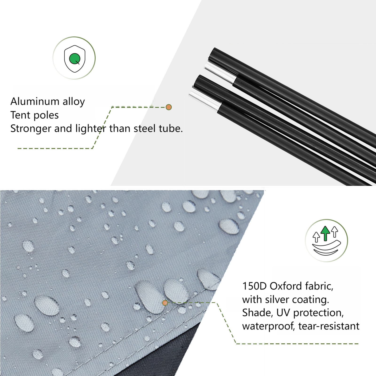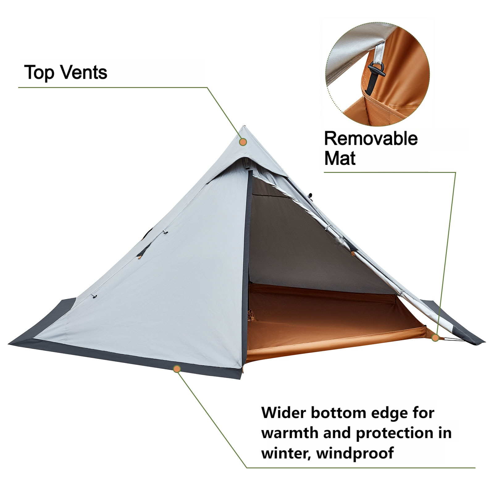 A lightweight aluminum alloy pole provides strength without adding bulk, making setup and transport effortless. The included detachable Oxford cloth mat (waterproof to 3000mm) adds versatility—use it for extra protection or remove it when setting up a wood stove.