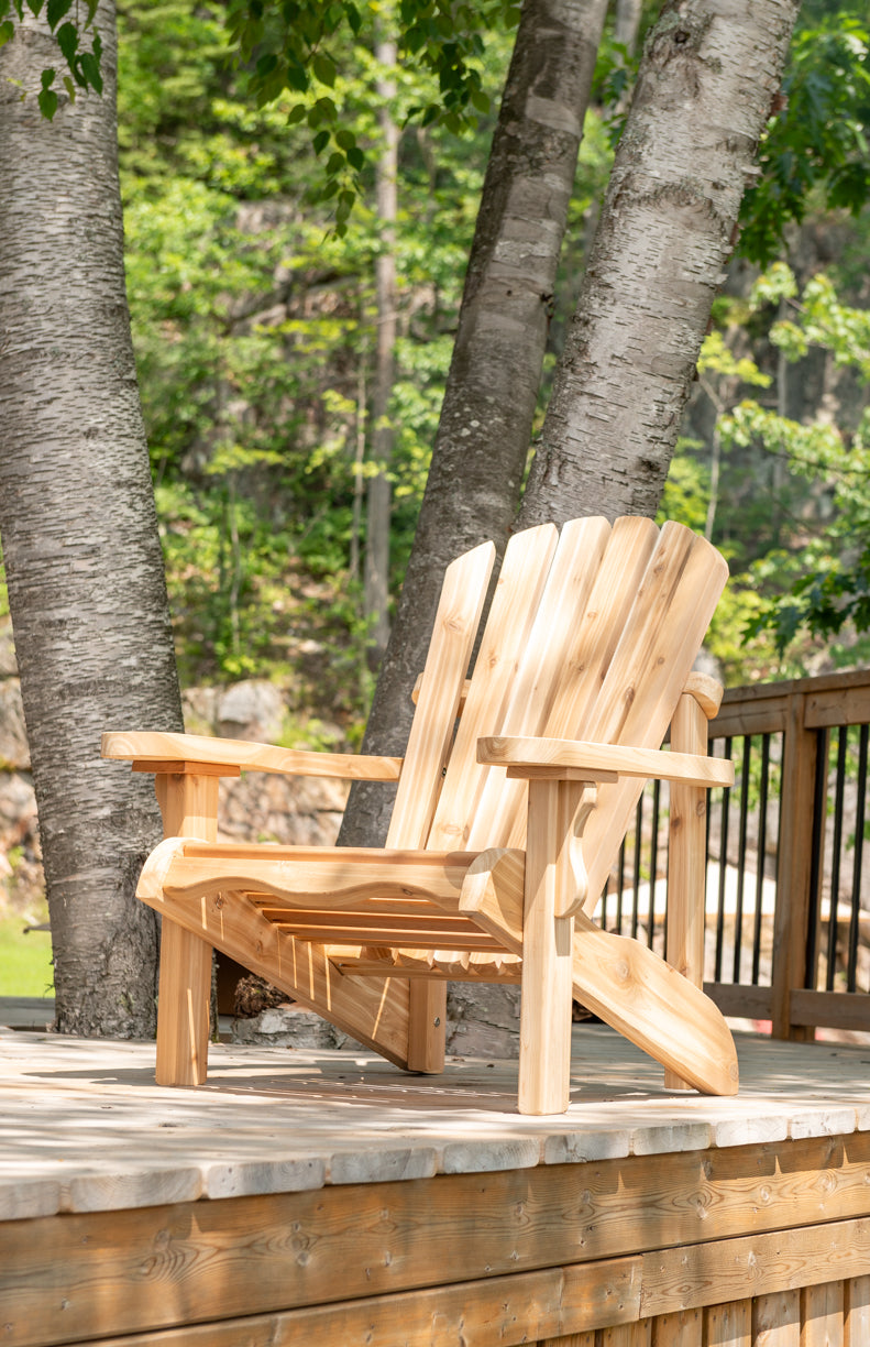 Bring timeless comfort and craftsmanship to your outdoor space with our White Cedar Adirondack Chair, proudly handcrafted in Canada. Built from Canadian white cedar, this chair combines natural beauty with exceptional durability, making it a perfect addition to patios, decks, and firepit lounges.