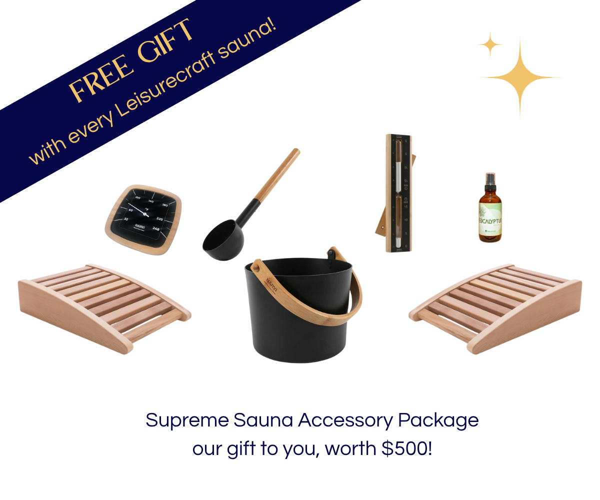 Remember to add your FREE GIFT Supreme Sauna Accessory Package!