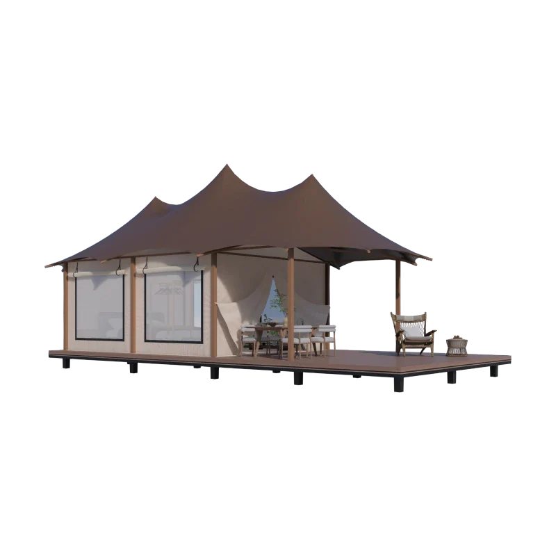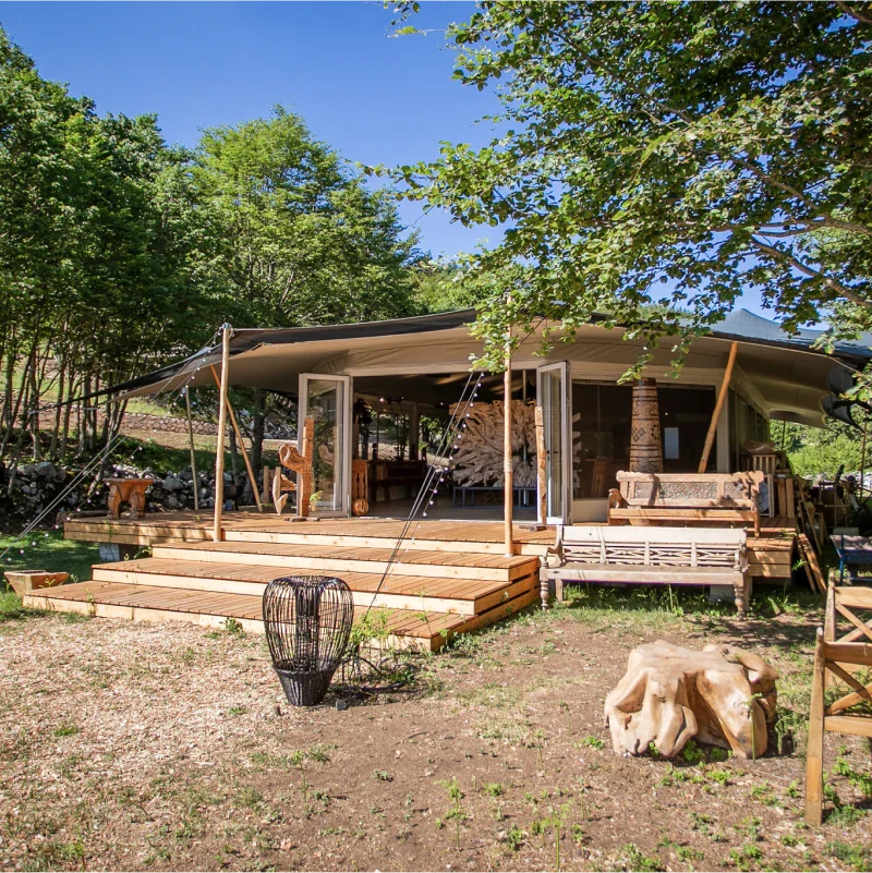 Step beyond ordinary camping and into the world of luxury safari living. Thoughtfully designed to bring comfort, safety, and elegance to the outdoors, this tent transforms any landscape into a personal retreat. With space for a bedroom, kitchen, and modular bathroom, plus an inviting outdoor terrace, it’s a haven where you can embrace the beauty of nature without giving up the comforts of home.