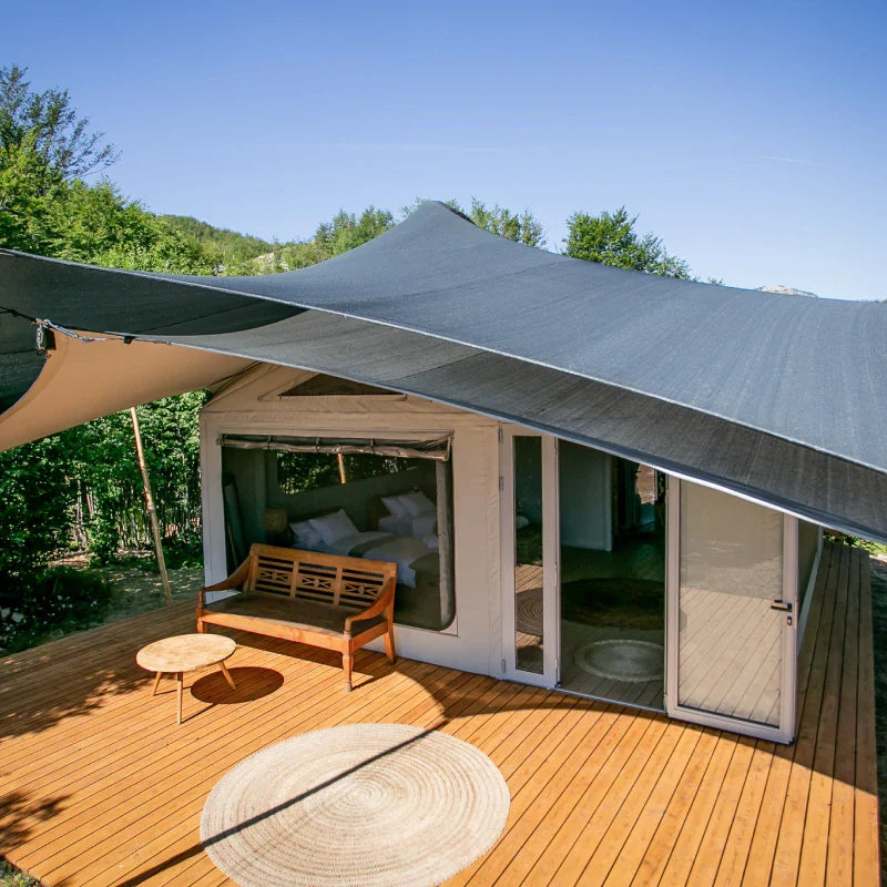 Thanks to Sheltent’s modular plug-and-play design, installation is simple and efficient. Optional modular bathrooms and decking systems allow you to tailor your retreat — from indulging in a hot bath after a day of adventure to enjoying quiet evenings on your private deck.