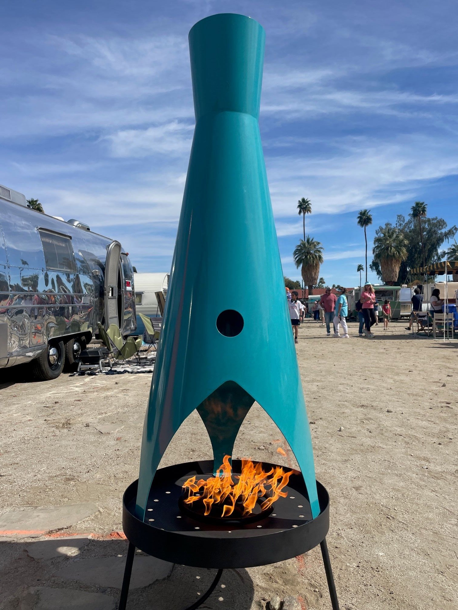 Compact enough for intimate spaces yet bold enough to anchor a full outdoor lounge, the 6ft Stratofire is built to spark conversation, elevate ambiance, and transform any setting into a scene straight out of a retro-futuristic dream.