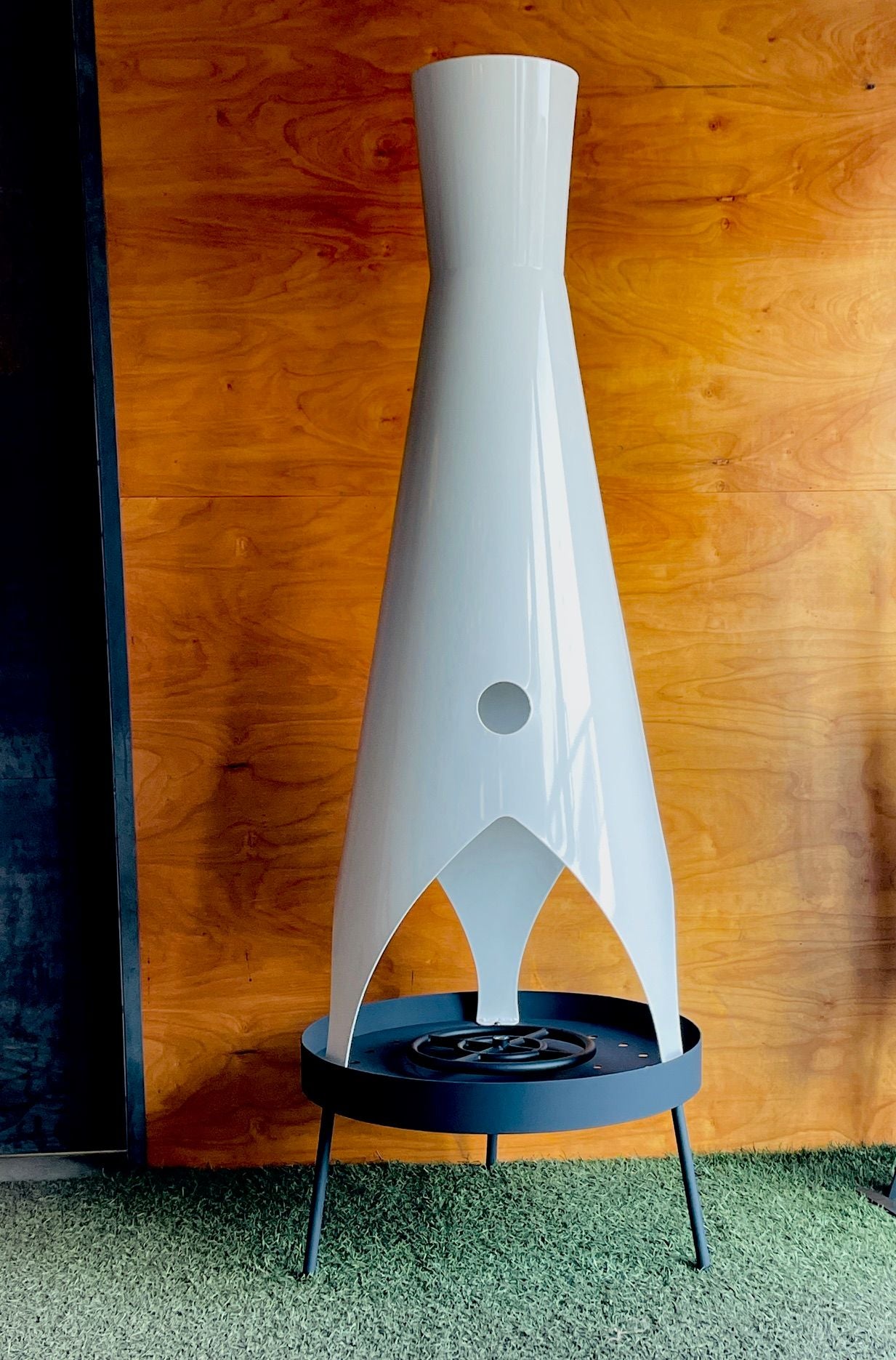 The 6ft Stratofire brings the iconic retro-futuristic silhouette of its towering sibling into a more versatile size - perfect for patios, pool decks, rooftop lounges, and design-focused outdoor spaces that crave a statement piece without overwhelming the environment.