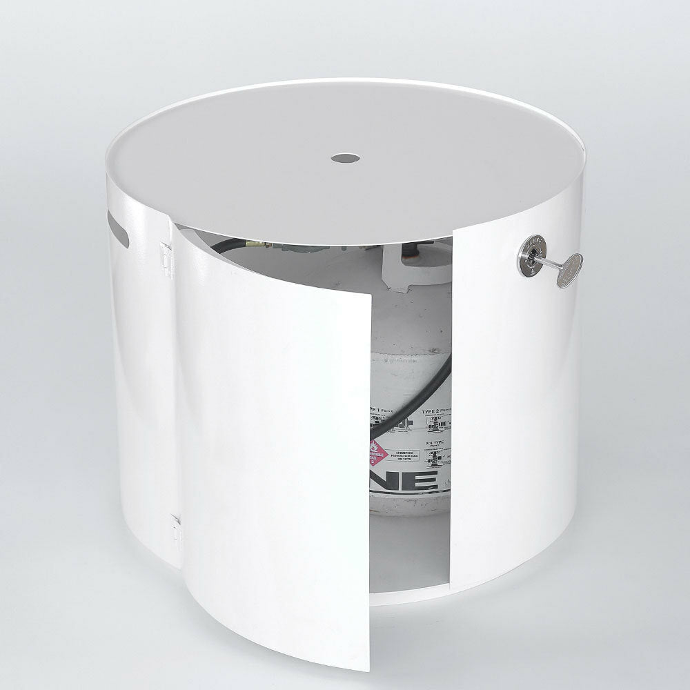 The hose routes cleanly through the center for a tidy, unobtrusive setup, allowing your fire feature to shine without visible clutter. Simply store the tank inside, close the concealed panel, and enjoy a beautifully unified display.
