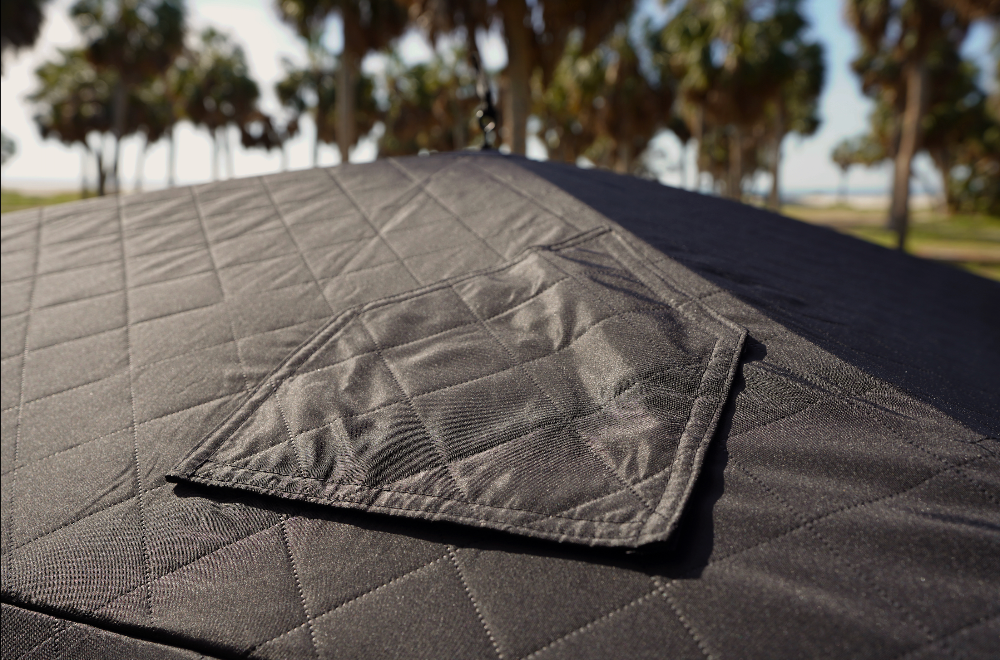 Tent is constructed of two layers of 300D Oxford fabric with a layer of insulation ultrasonically quilted in between.
