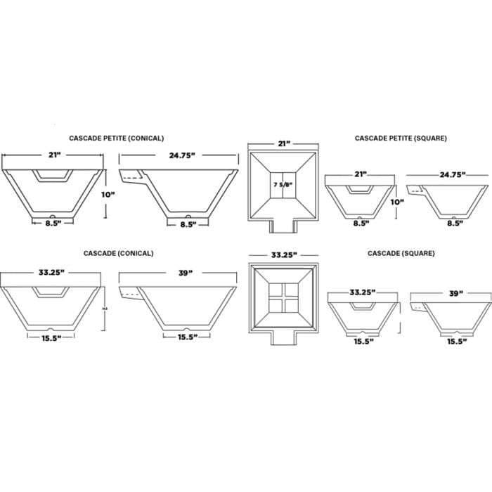 Custom Finishes – Choose from 12 available colors with copper or stainless steel spillways