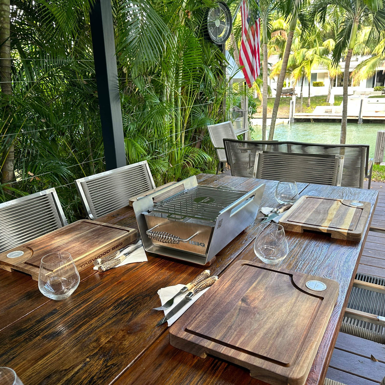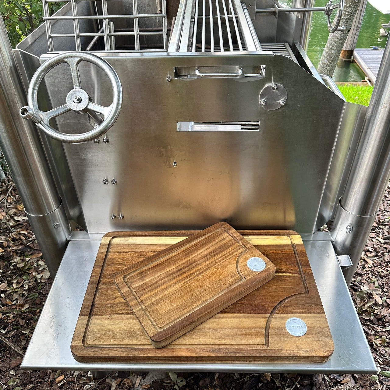 The edge-grain construction provides added strength while helping to minimize knife marks over time. Hand-carved side grips allow for easy lifting and confident handling, making it as practical as it is refined. With its warm natural finish and balanced proportions, this board adds both functionality and understated elegance to any outdoor cooking space.