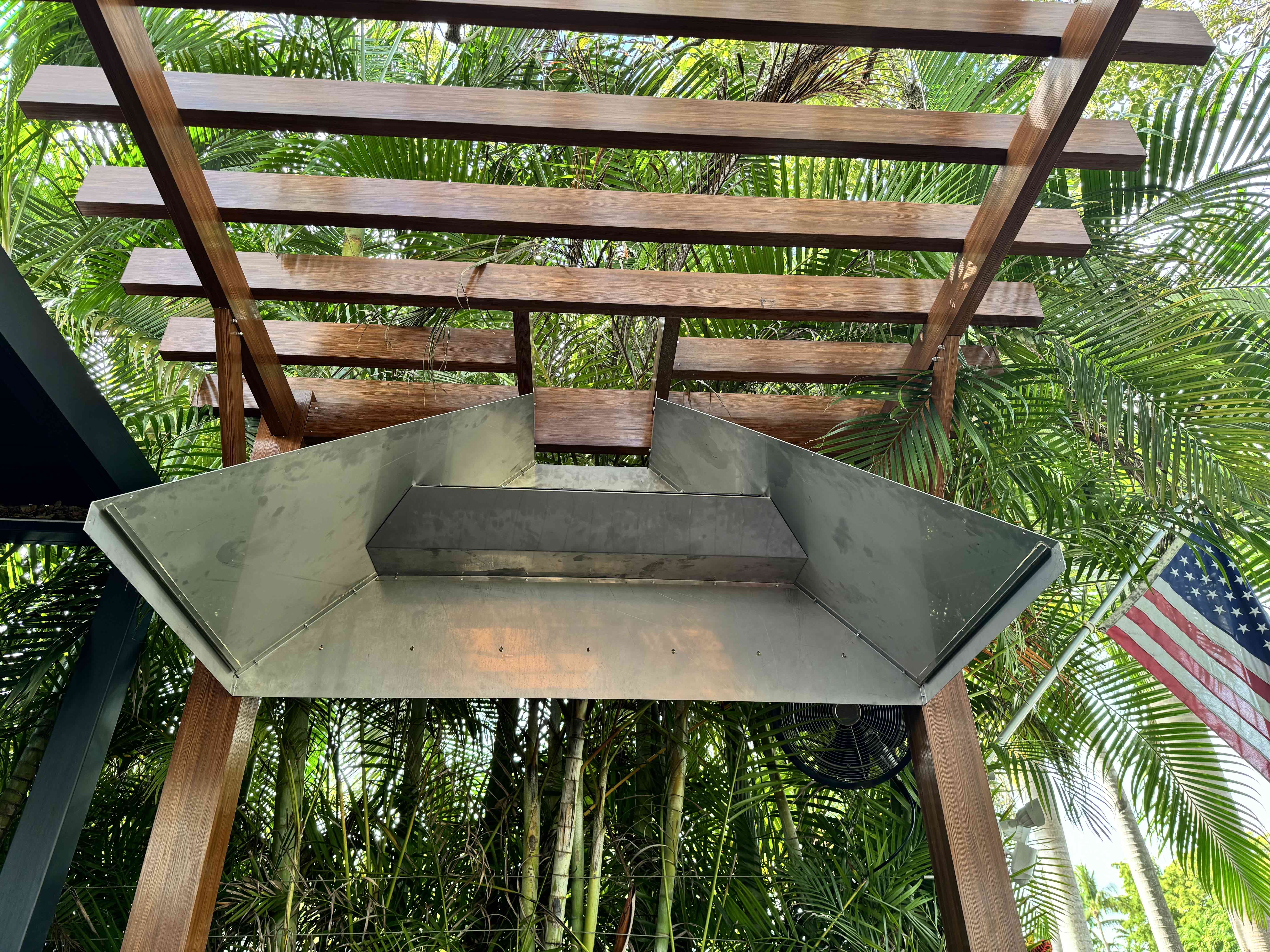 Crafted from thick, 2 mm 304 stainless steel, this wall-mounted smoke hood offers a refined, durable solution for managing smoke around your outdoor grilling area. Designed to function without electricity, it naturally draws smoke upward to help protect nearby structures — like pergolas — from heat and smoke staining, while keeping your cooking space more comfortable.