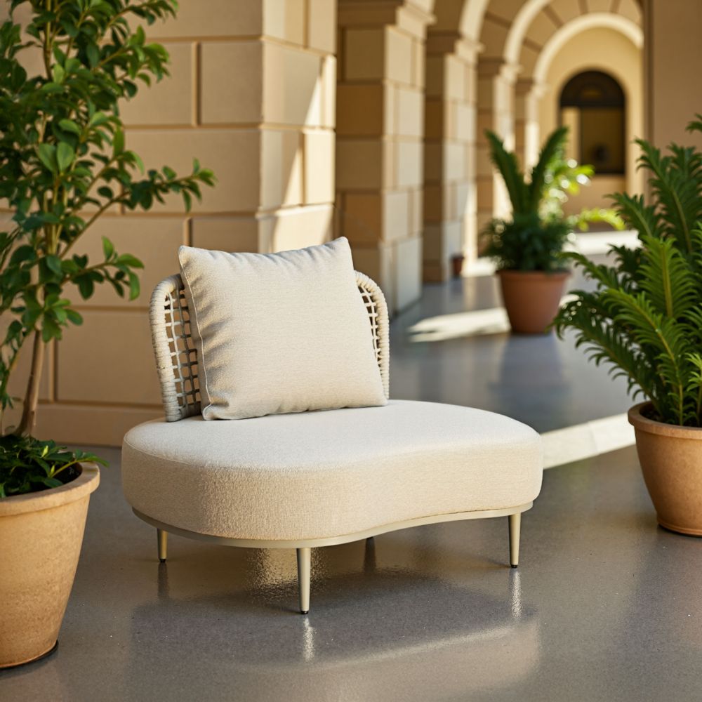 With its soft neutral tones, clean contemporary lines, and artful woven accents, the Ruhe set blends seamlessly into any outdoor environment — from poolside terraces to intimate garden patios. The result is an atmosphere that feels both welcoming and elevated, turning everyday spaces into modern sanctuaries of calm.